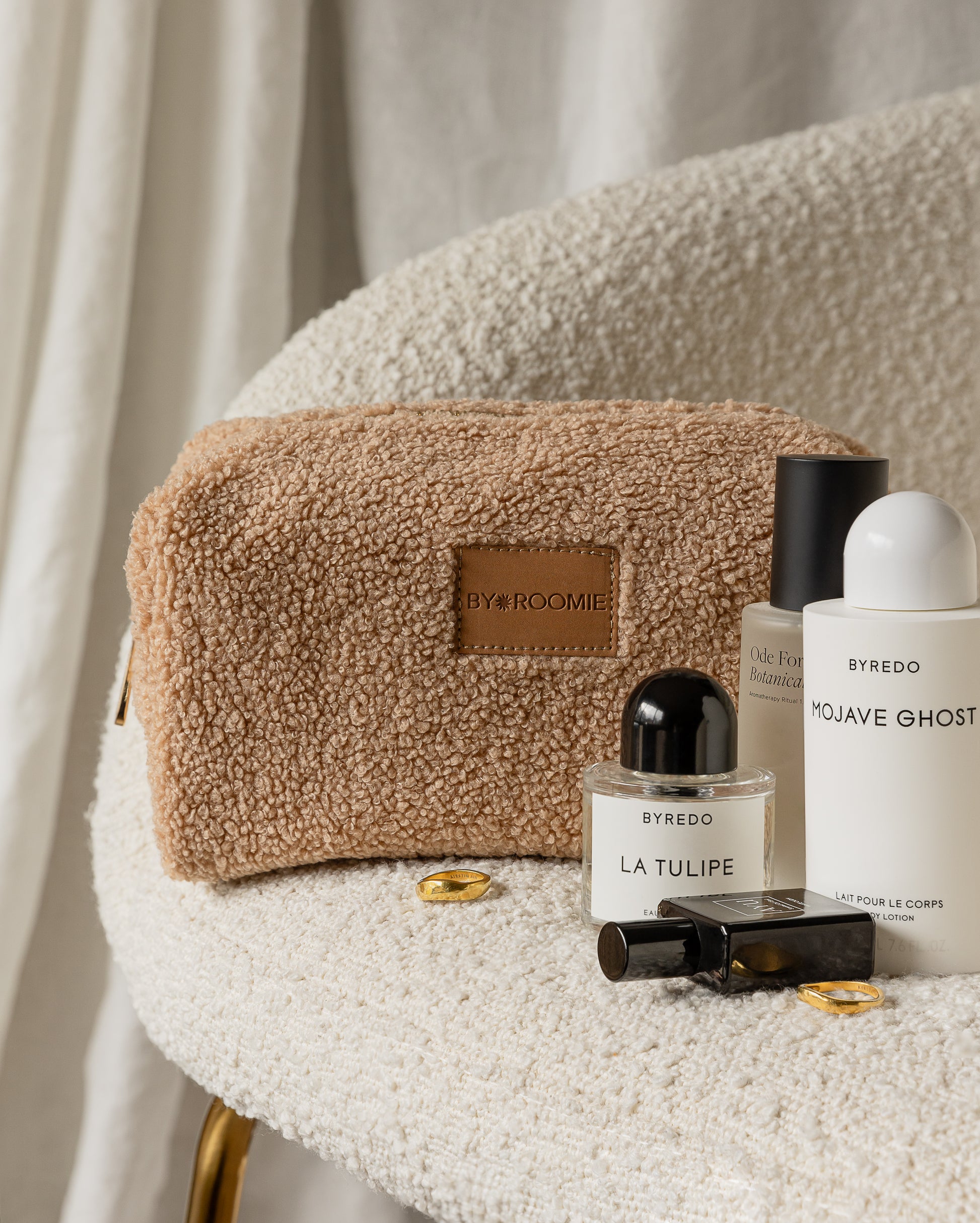 ntroducing the Bobbi Makeup Bag, a luxurious and versatile machine washable cosmetic bag designed to elevate your beauty routine. Crafted from soft and plush teddy material in a stunning honey colour, this bag combines style and functionality to provide you with the ultimate storage solution for your skincare, makeup, toiletries, and hair care essentials.