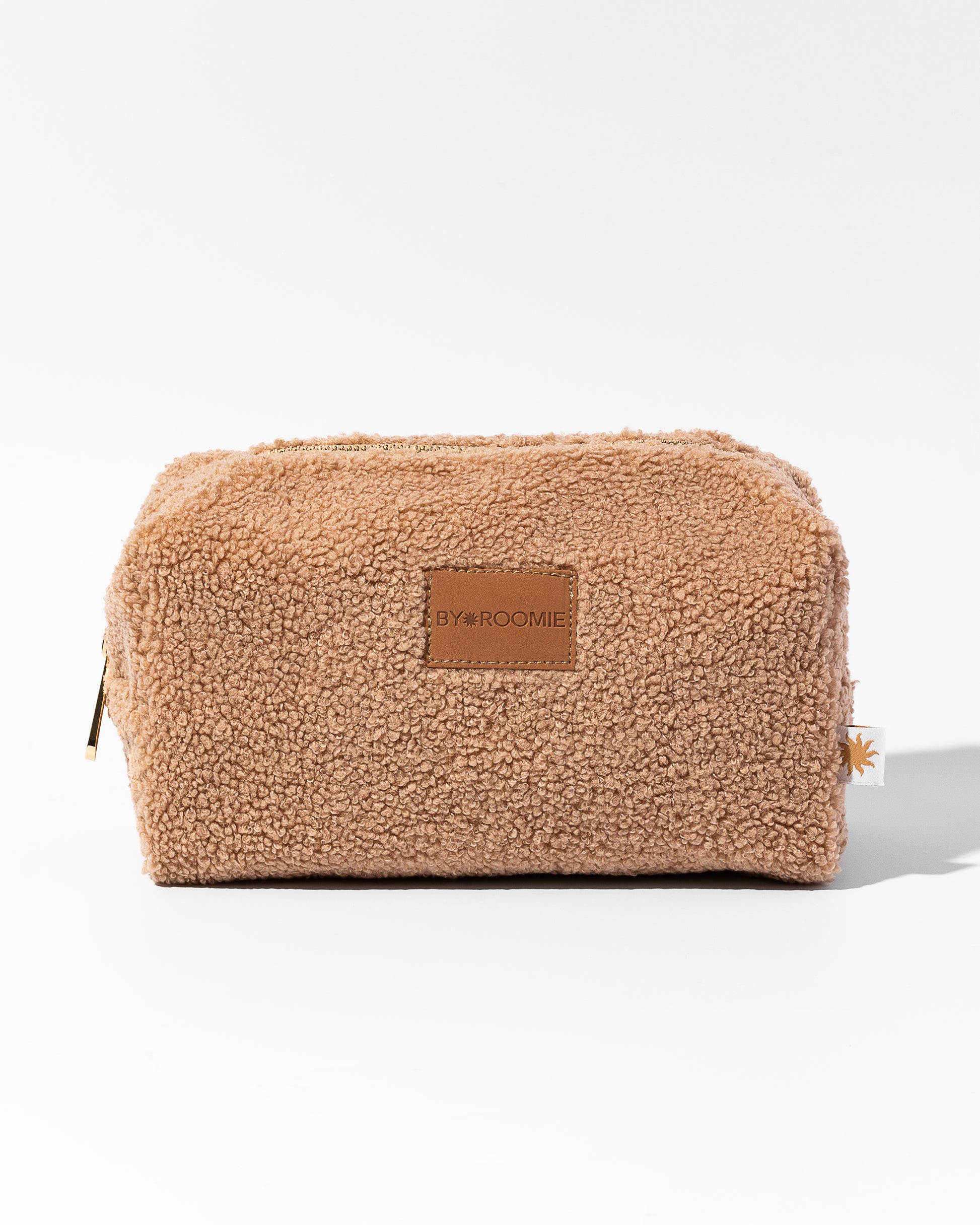Introducing the Bobbi Makeup Bag, a luxurious and versatile machine washable cosmetic bag designed to elevate your beauty routine. Crafted from soft and plush teddy material in a stunning honey colour, this bag combines style and functionality to provide you with the ultimate storage solution for your skincare, makeup, toiletries, and hair care essentials.